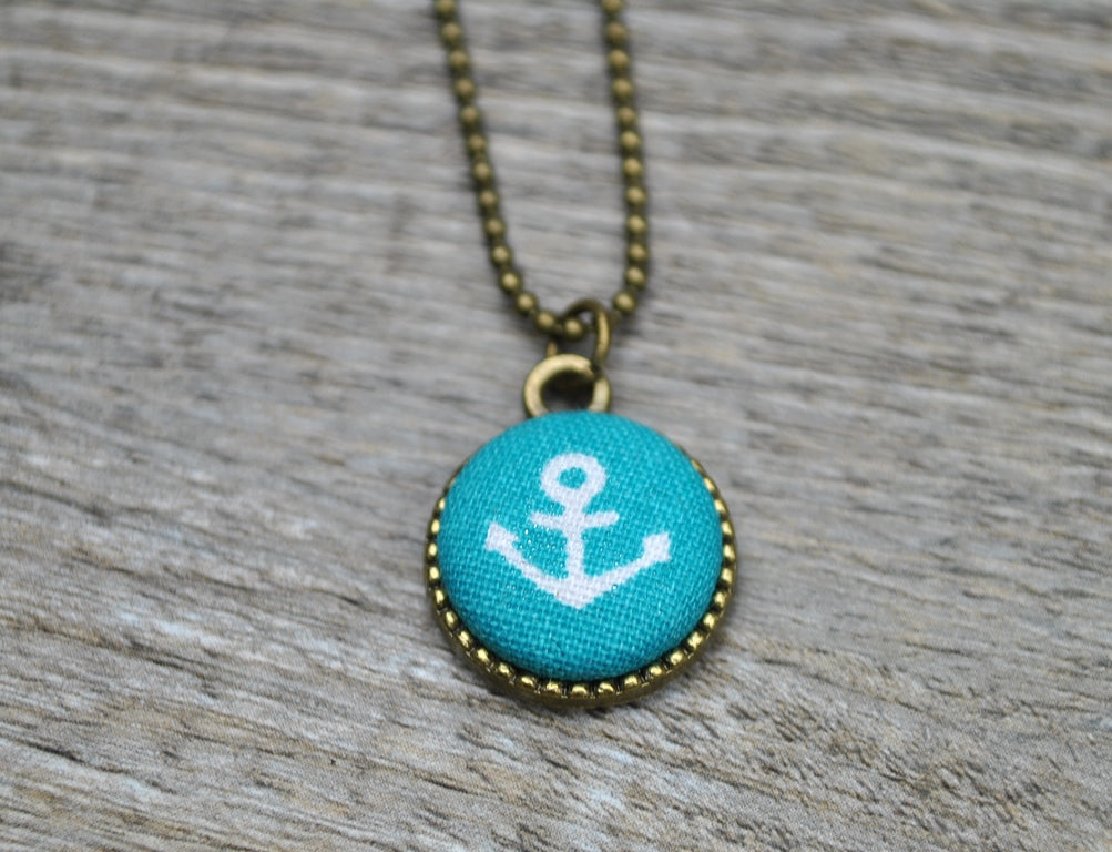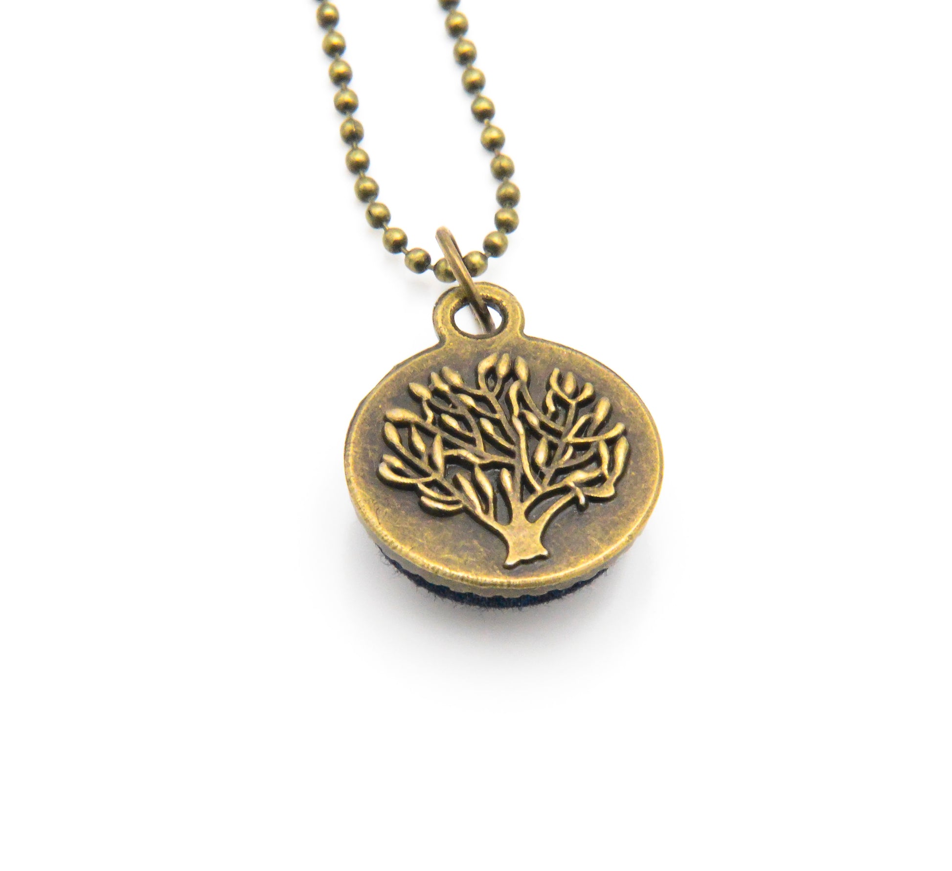 Kugelkette mit Stoffanhänger, die Rückseite ist mit einem Lebensbaum versehen